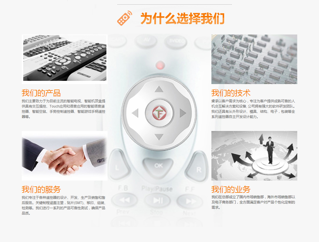 天長市天昊電子有限公司創(chuàng)建于1996年,位于長江之濱的電子產(chǎn)品之鄉(xiāng)天長市,南接古城南京,東與揚州相鄰,地處充滿活力的“長三角”經(jīng)濟圈,有著良好的投資與發(fā)展環(huán)境。公司多年來一直致力于遙控器的開發(fā)、設計與生產(chǎn),創(chuàng)造以人為本的健康生活環(huán)境。 天長市天昊電子有限公司以其設計的新穎、技術的創(chuàng)新、優(yōu)良的品質(zhì)、專業(yè)的制造,被國外內(nèi)的諸多家電生產(chǎn)企業(yè)(公司)推崇。 公司堅持創(chuàng)新是企業(yè)的未來,始終注重技術研發(fā)和儲備;公司秉承務真求實的理念,始終嚴格執(zhí)行6S管理模式,公司堅持人才是企業(yè)的高度,逐步打造了一支團結拼搏的員工團隊;天昊電子通過20年電子產(chǎn)品的生產(chǎn),對行業(yè)產(chǎn)品的應用問題解決積累豐厚的經(jīng)驗…… <了解詳情>